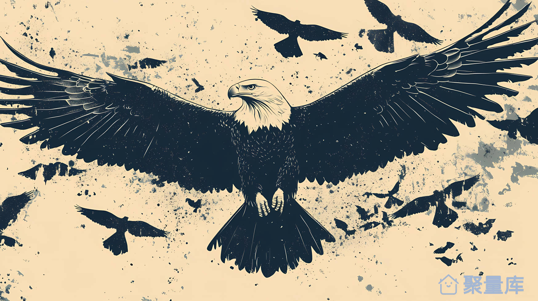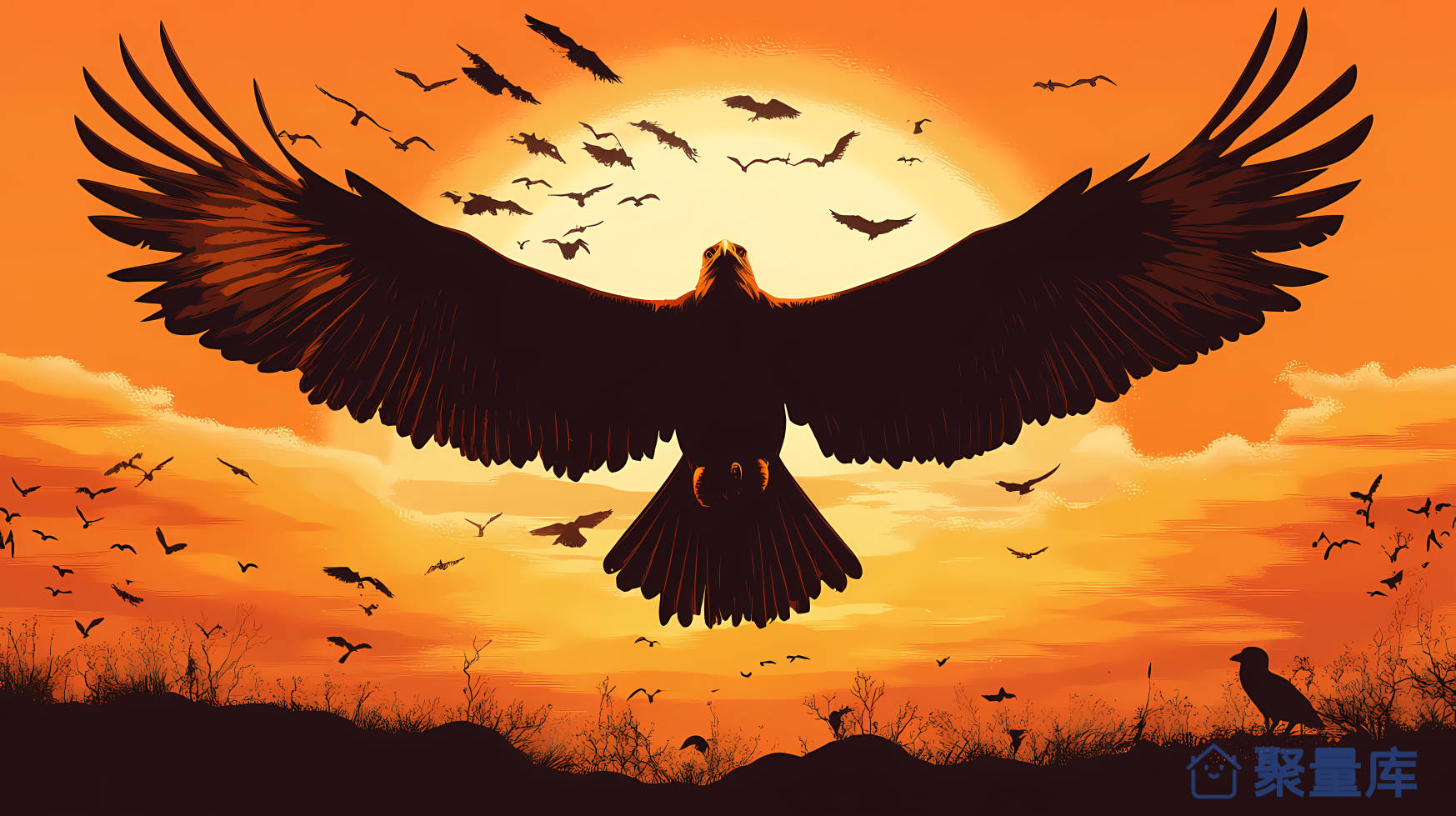 聚量库AIGC作品:《展翅雄鹰与群鸟剪影图》