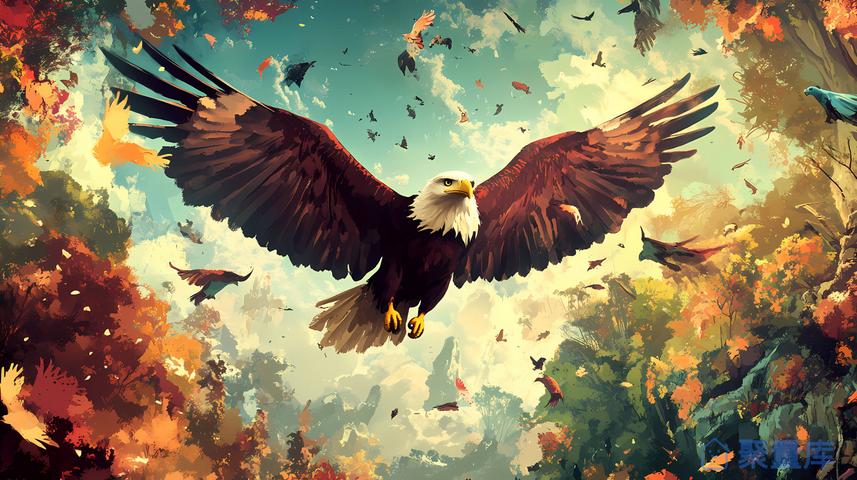 聚量库AIGC作品:《翱翔的雄鹰与缤纷秋景》