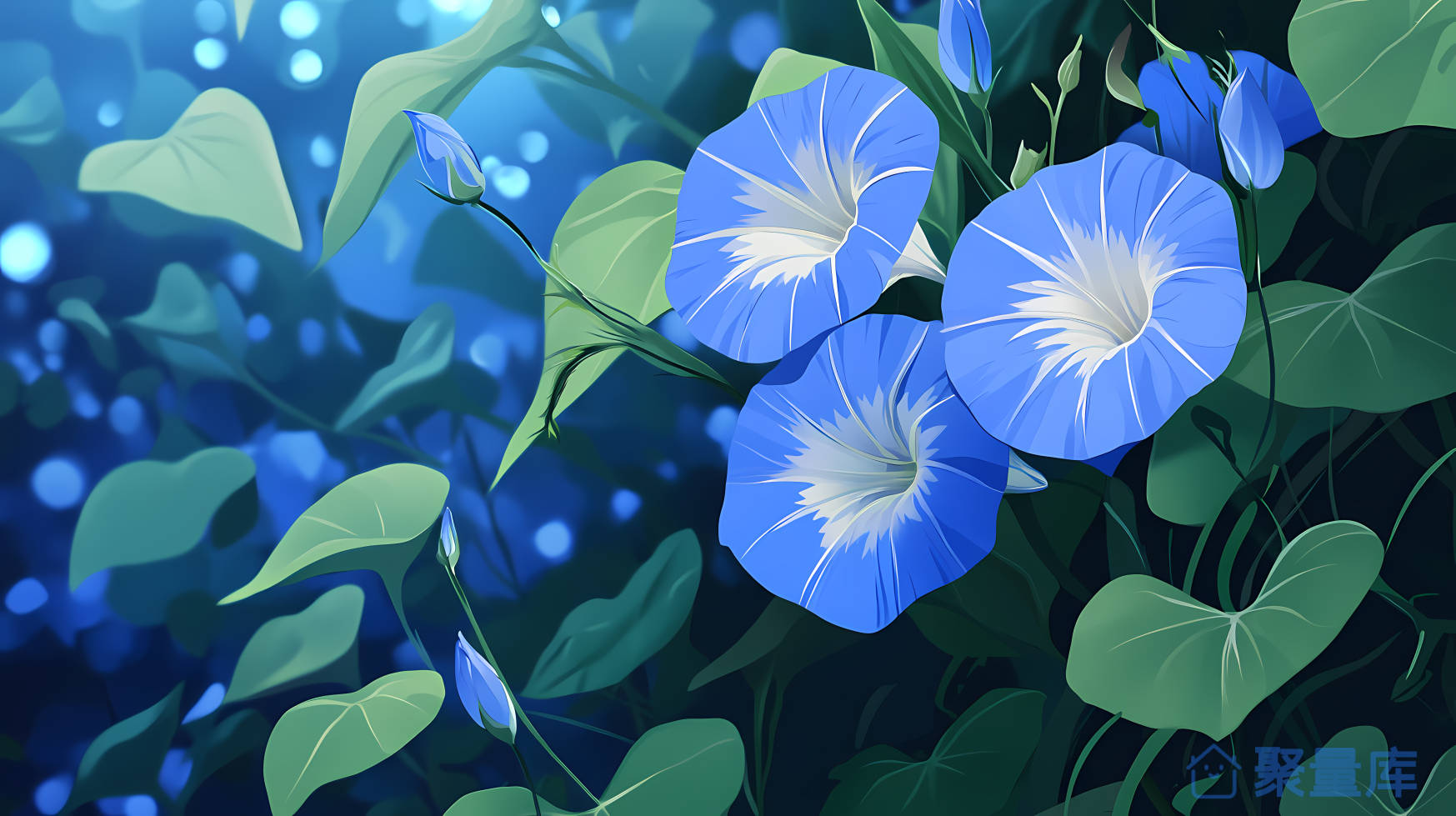 聚量库AIGC作品:《梦幻蓝牵牛花插画》