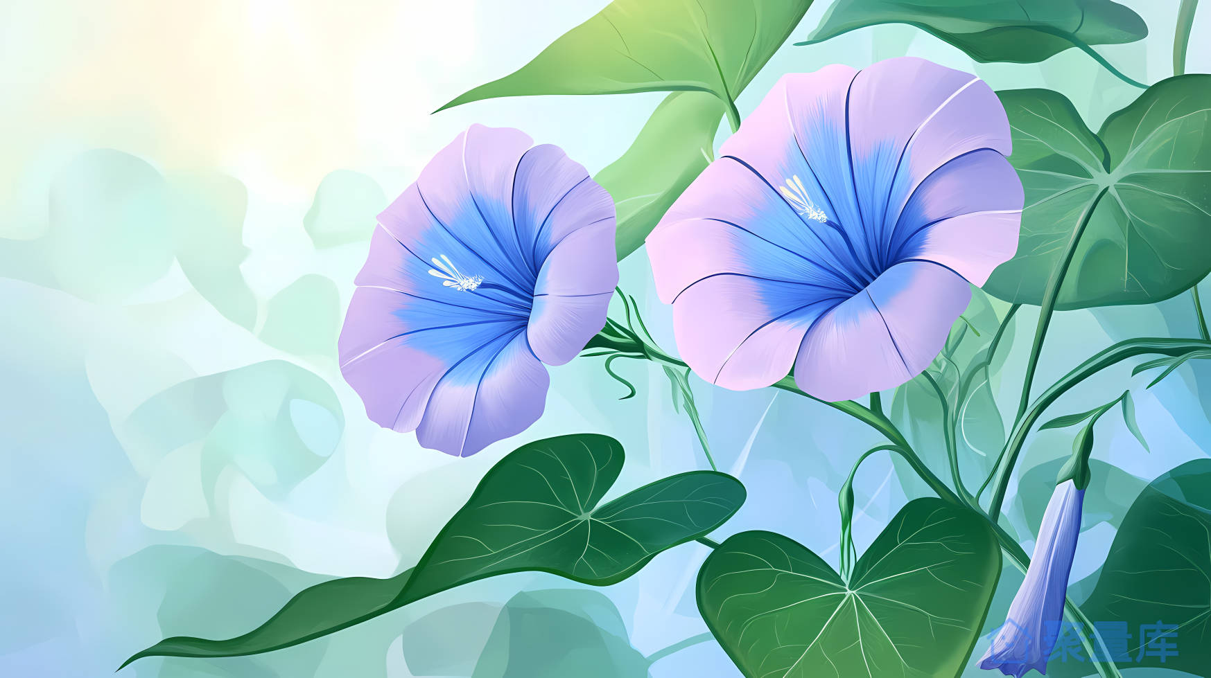 聚量库AIGC作品:《清新蓝紫色牵牛花插画》