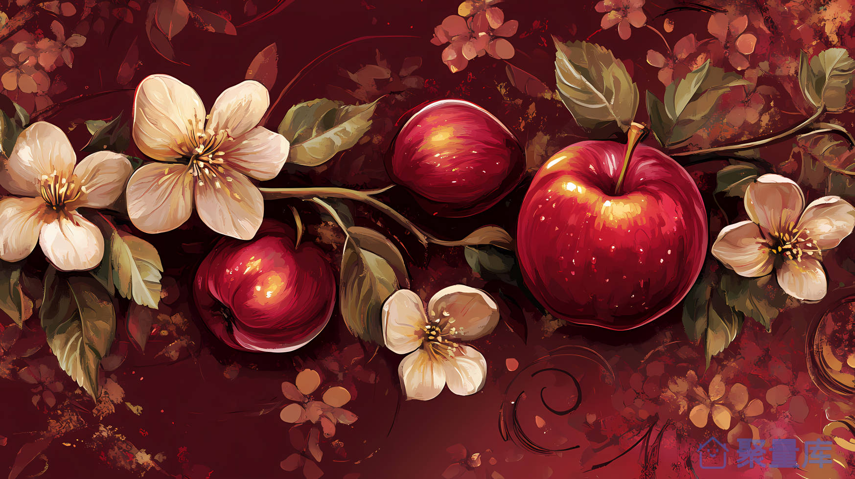 聚量库AIGC作品:《红苹果与花朵装饰画》