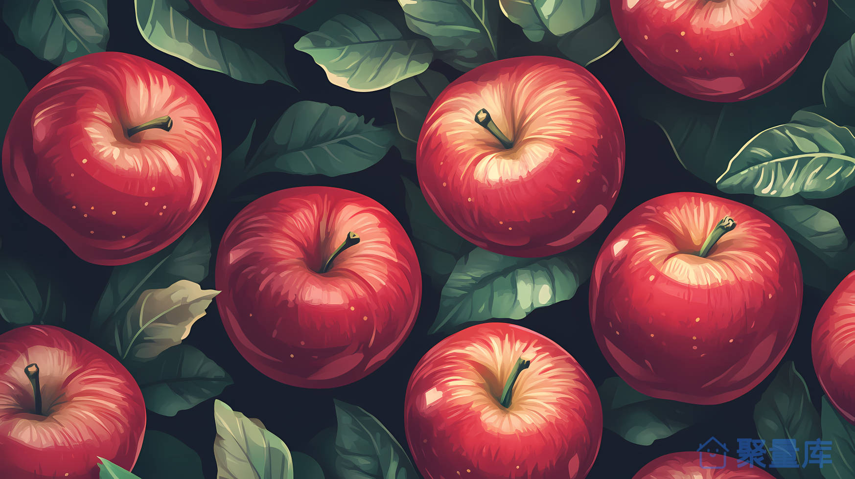 聚量库AIGC作品:《红苹果绿叶无缝图案》