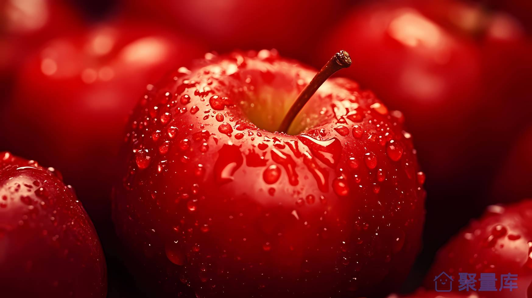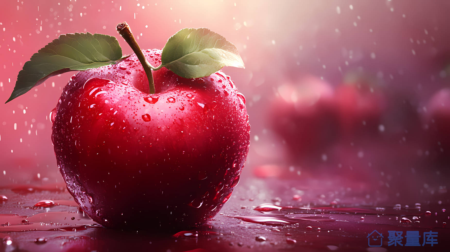聚量库AIGC作品:《水珠晶莹的红苹果》