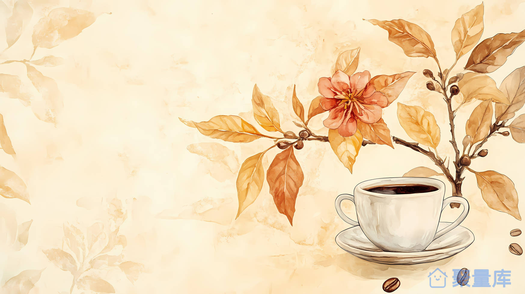 聚量库AIGC作品:《秋日咖啡时光插画背景》