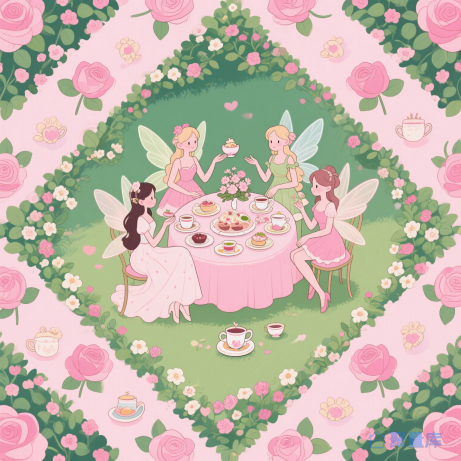 聚量库AIGC作品:《四方连续图粉绿仙女聚会之约》