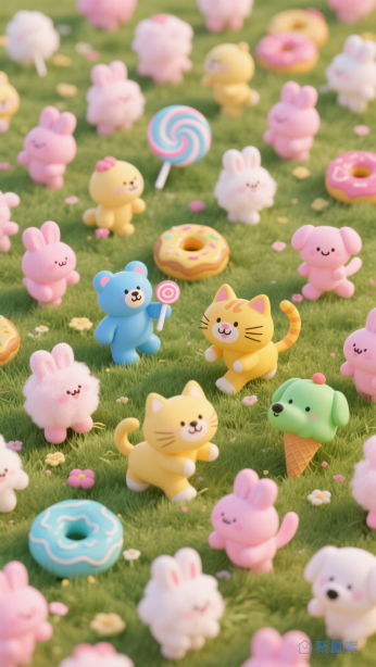 聚量库AIGC作品:《四方连续图粉绿动物甜品铺》