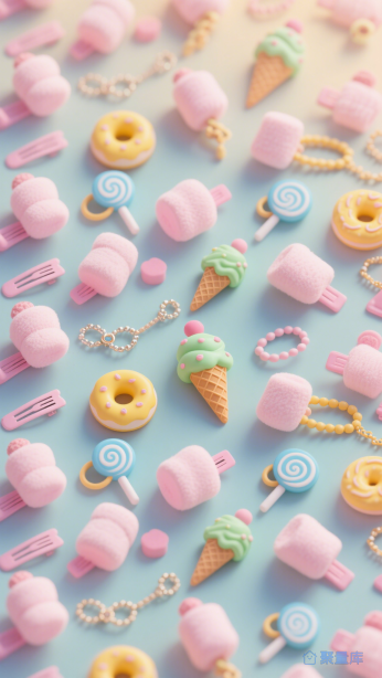 聚量库AIGC作品:《四方连续图粉色甜点萌物集》