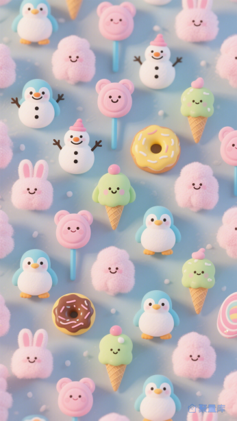 聚量库AIGC作品:《四方连续图粉萌雪人甜甜圈》