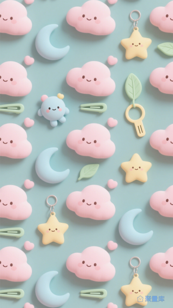 聚量库AIGC作品:《四方连续图粉蓝云朵萌物汇》
