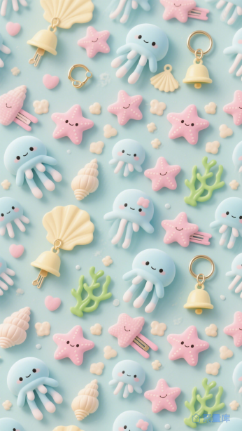 聚量库AIGC作品:《四方连续图粉蓝海洋精灵趣》